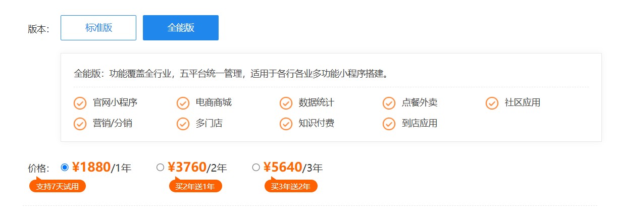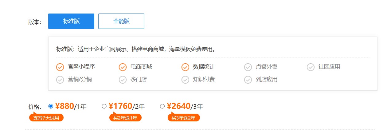 | 小程序多門(mén)店/多商家 | 門(mén)店數(shù)量 | - | 100 |